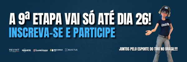 Entramos na fase decisiva da 9ª etapa, com encerramento em 26 de outubro. Este é o momento de transformar treino em resultado, reservar um período no clube filiado mais próximo e realizar suas provas com foco e método. Lembrando que, conforme entendimento oficial da Polícia Federal, você pode utilizar arma de outro CAC ou do clube.