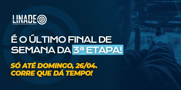 Chegamos ao momento mais quente da 3ª etapa: é o último final de semana e ainda dá tempo de entrar em linha. No boletim de hoje, além do chamado de reta final, tem novidade importante no LINADE Club com marca nova e premiação especial, a modalidade da semana no novo Campeonato Internacional de Carabina de Ar, um alerta para quem ainda não percebeu a quantidade de modalidades disponíveis (sim, até 7 para fuzil), e um lembrete essencial sobre habitualidade.