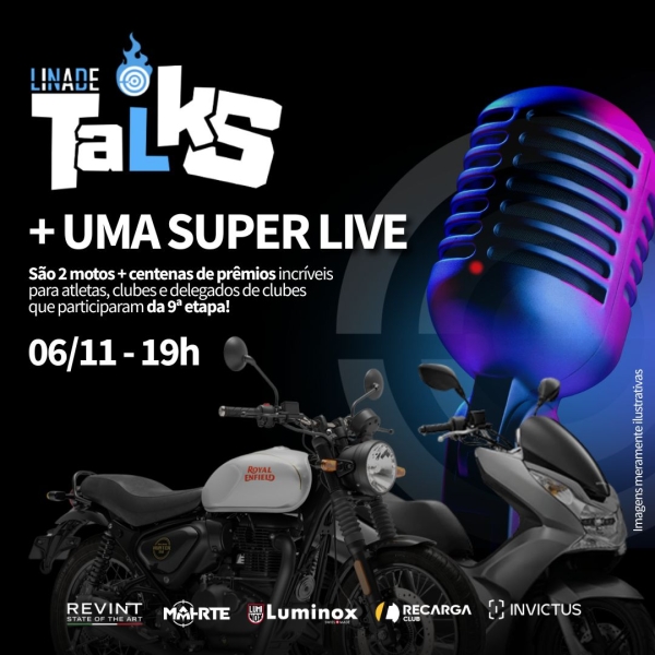Está chegando a hora de mais um LINADE Talks — a live de sorteios que vai premiar atletas, clubes e delegados de clubes participantes da 9ª etapa da temporada 2025.